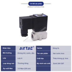 2L400-40 F Van điện từ nước (dầu, khí) Airtac(DC12V điều khiển dẫn hướng – 2/2) Tổng kho khí nén Khoa Kim chuyên phân phối các sản phẩm khí nén chính hãng tại Việt Nam
