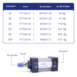 SCT80X50-100S Xi lanh vuông Airtac (SCT80-50-100S) Tổng kho khí nén Khoa Kim chuyên phân phối các sản phẩm khí nén chính hãng tại Việt Nam